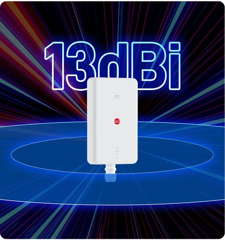Imponujący zestaw anten ze wzmocnieniem do 13 dBi, dzięki któremu korzystanie z internetu 5G/LTE staje się możliwe nawet tam, gdzie inne urządzenia nie znajdują zasięgu.